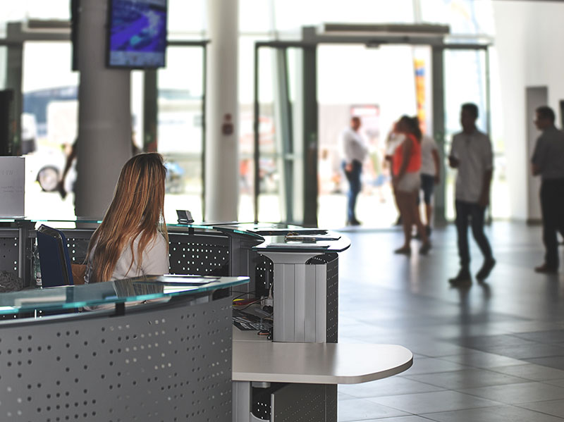 Begrüßung und Kontrolle von Besuchern und Mitarbeitern, Koordination von Lieferanten und Vermittlung von Anrufern.